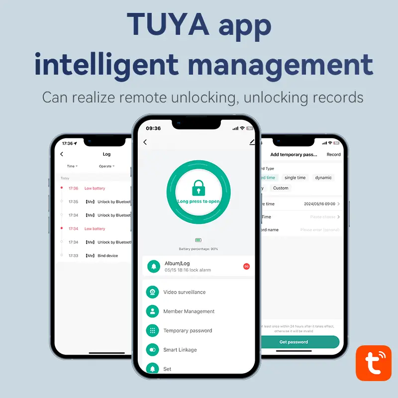 - Konventionelle Methoden: Behält Passwörter, physische Schlüssel, IC-Karten und temporäre Codes für unterschiedliche Benutzeranforderungen und doppelte Sicherheit.